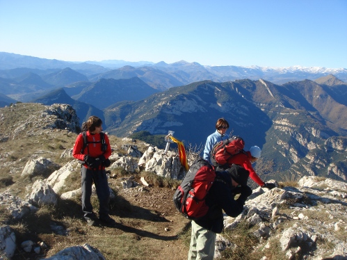 Plus humble que conquérant et voulant maintenir le mythe initial, le randonneur dispose parfois quelques cailloux sur le sommet. Et aussi, pourquoi pas, une pensée, une photo, un fanion, un drapeau, une croix ou une cadira foradada.