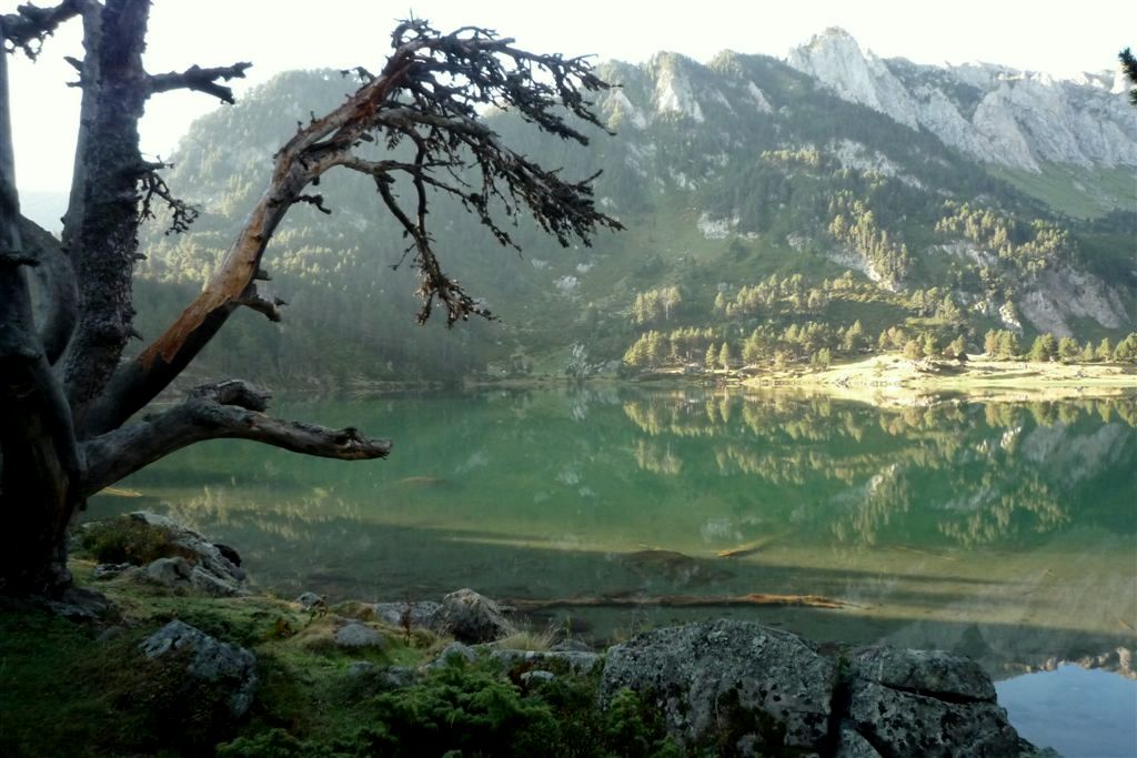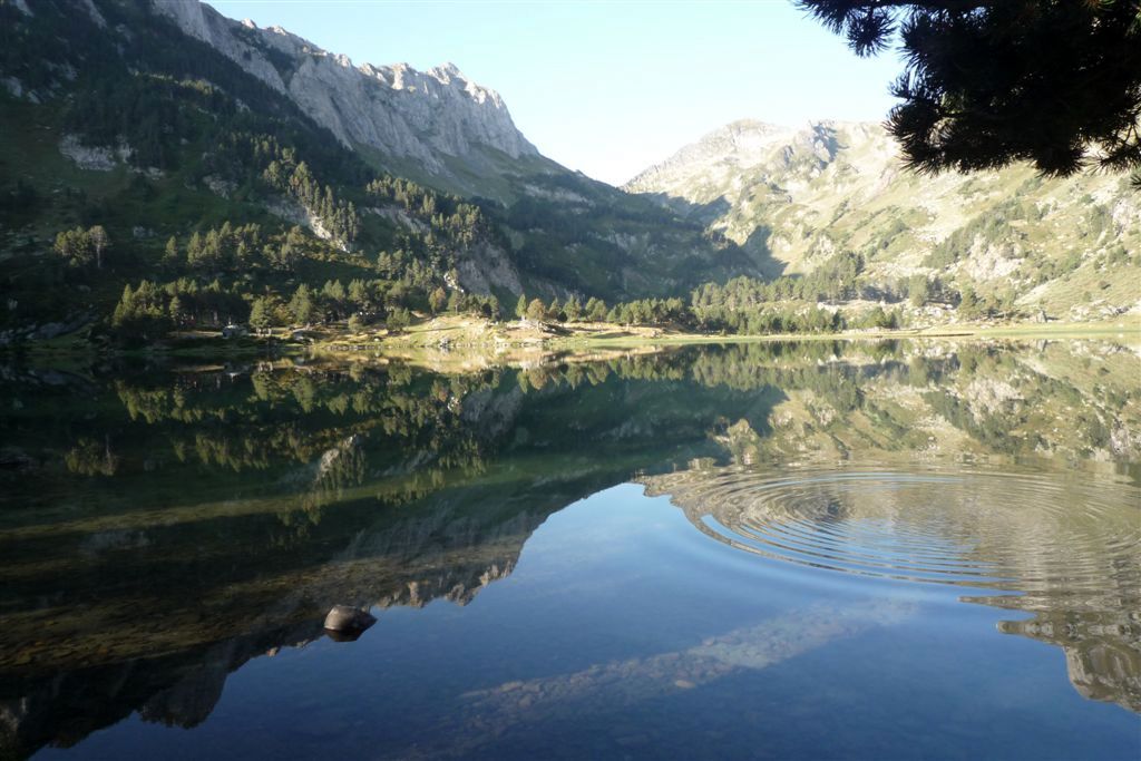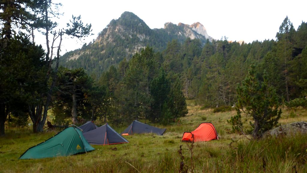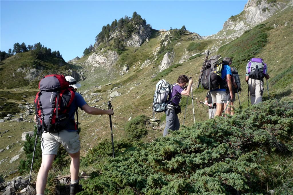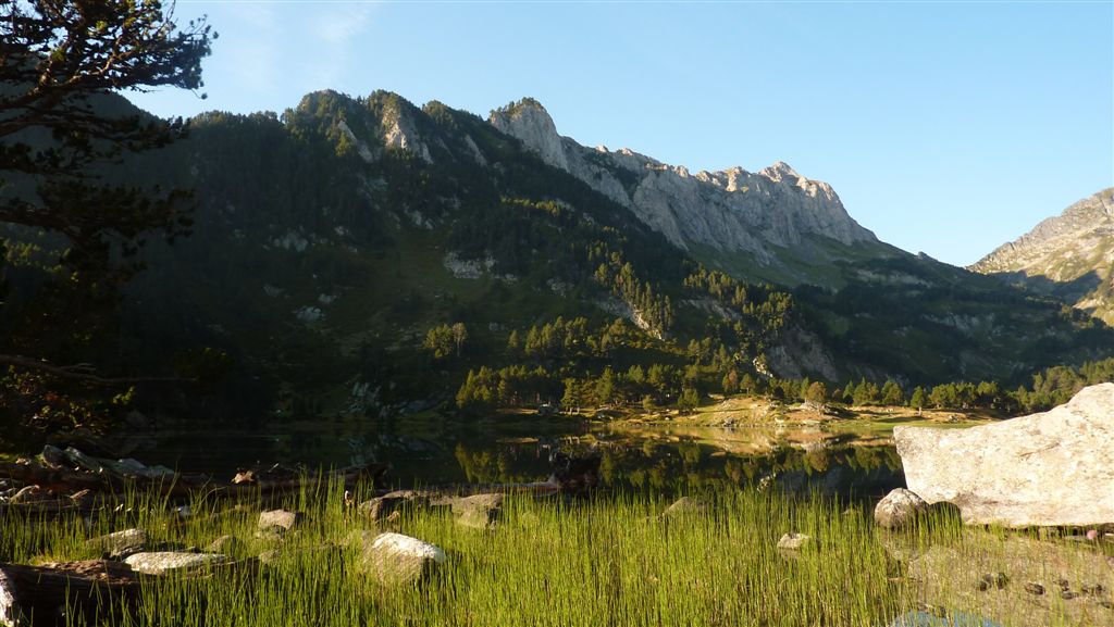 Au petit matin, frais et dispos, nous nous engageons dans la vallée rejoignant le Col de Laurenti. Les marmottes ne manquent pas de faire entendre leur cri strident, le vautour plane, la crête de Laurenti, déchiquetée et pentue, nargue le Roc Blanc. Avant le petit étang (2251m), nous bifurquons à gauche en direction de la Portella del Llaurenti, se resserrant progressivement.