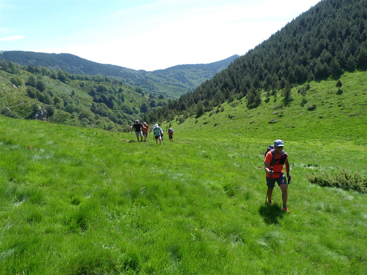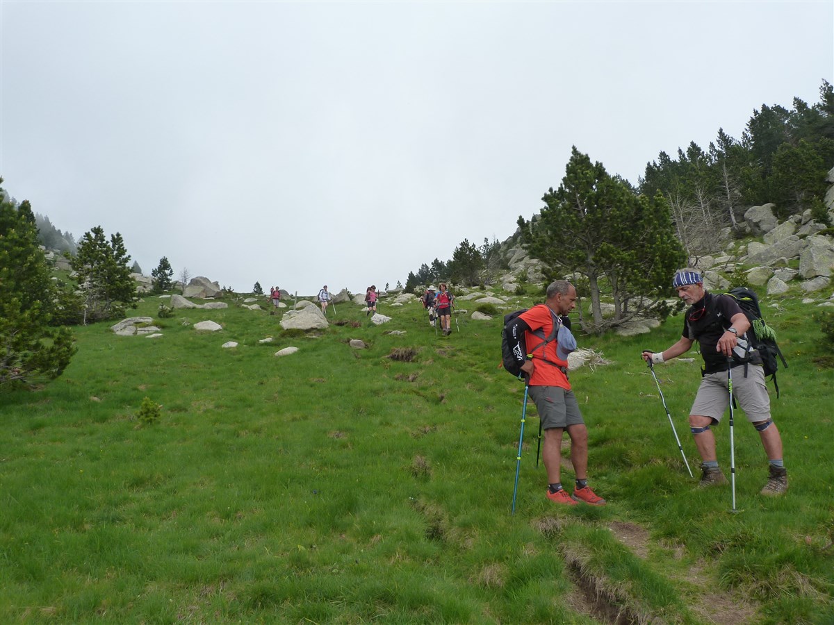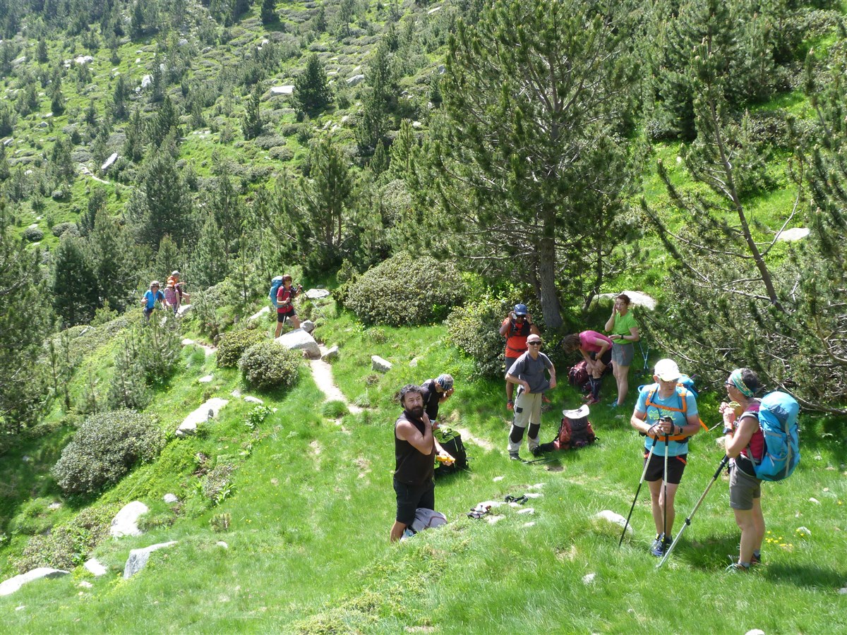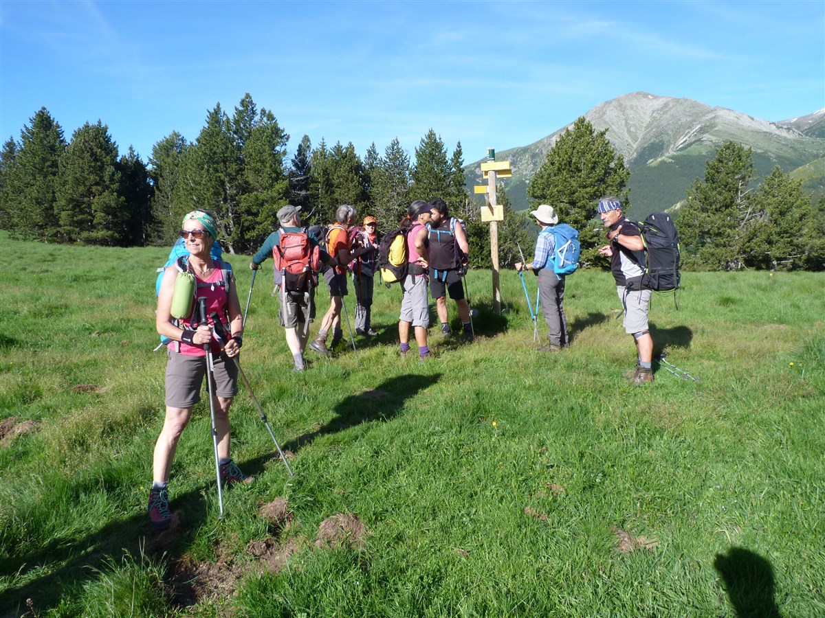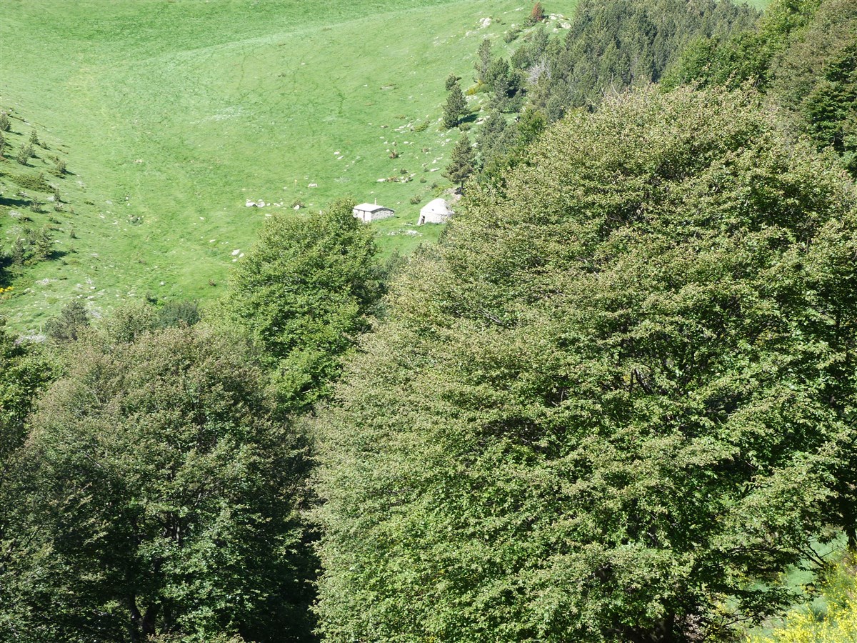 Départ de la randonnée au refuge de les Conques (alt 1597m) où nous traverserons agréablement une forêt de sapins et de hêtres, puis nous arriverons sur une très belle clairière: el Coll Baix (alt 1690m) .