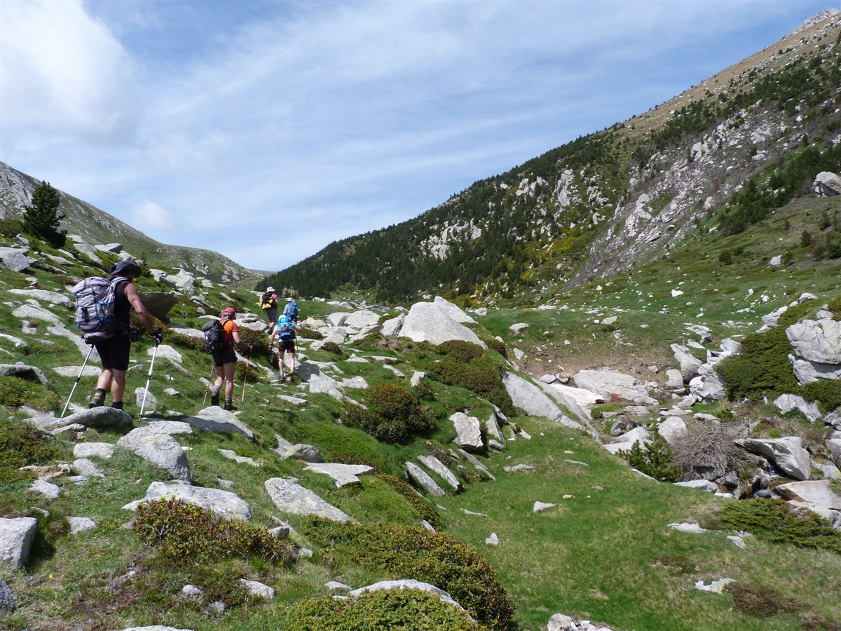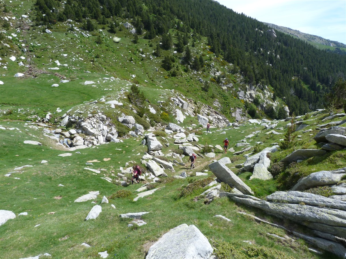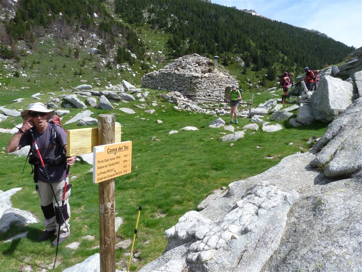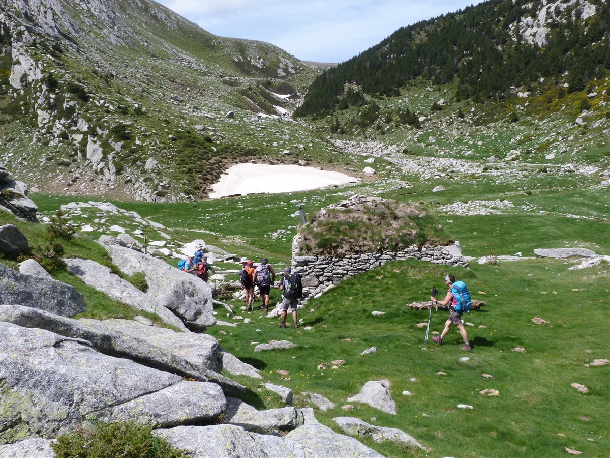 Nous bifurquerons en direction de la cabane de l’Ullat, avec une vue sur la prairie et sur le Costabona. Nous continuerons jusqu’à l’orri ( la Cabane de la Coma del Tec) avec un espace dégagé ou nous croiserons marmottes, isards, et grands rapaces qui dominent les cimes du Costabona .