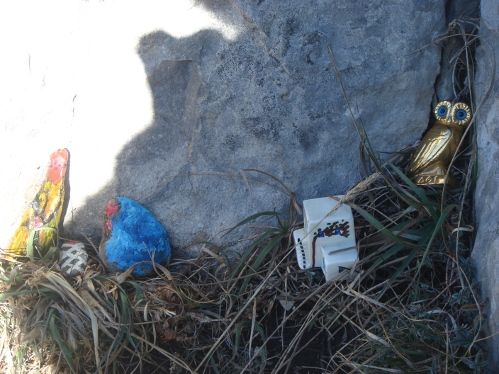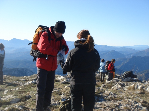 Plus humble que conquérant et voulant maintenir le mythe initial, le randonneur dispose parfois quelques cailloux sur le sommet. Et aussi, pourquoi pas, une pensée, une photo, un fanion, un drapeau, une croix ou une cadira foradada.